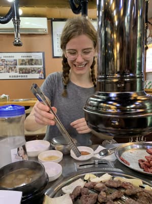 I first wanted to learn Korean after becoming close friends with a visiting student from Korea who attended my Minnesota middle school. Though I also did Taekwondo, a Korean martial art, for about eight years growing up, my friend was the main factor influencing my decision to learn the language. When she moved back to Korea, I promised her I would meet her there once I learned Korean. My goal of learning the language to reunite with her never faded but changed form as I discovered more about myself, grew in the language, and immersed myself in Korean political history and culture. My enthusiasm for international affairs is one of the driving factors in my continued interest in learning Korean.