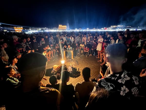 "Jamaa al-Fnaa feels like the heart of Marrakesh. This chaotic but lively square hosts persistent juice sellers, tourists from all over the world, snake charmers, and storytellers, as seen here. Storytellers exist to recount famous folktales in Darija and Amazigh with a certain degree of passion and spirit. Stories get passed on for generations that leave listeners with a new sense of adventure and magic. Apparently, taking photos of some storytellers are looked down upon. As soon as I took this picture, I suddenly received glaring eyes and shouting, people demanding I pay lots of money because I took that photo. This photo shows the moments before that awkward cultural experience, but also captures how captivated storytellers can keep their audiences."—Winona Zaky