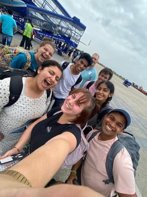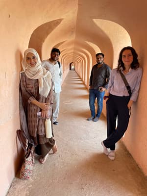"Taken inside the Bara Imambara, this photo commemorates an unforgettable memory on a unbelievably hot afternoon. Our whole cohort, accompanied by our language partners, explored the secret maze inside Lucknow's famous historical landmark. With our local guides leading the way, we wandered through the various picture worthy spots, concluding on the rooftop for a spectacular view of the city!"