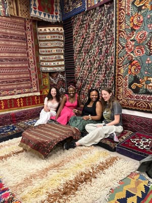 "While visiting Cappadocia for the weekend, my cohort friends and I got to learn more about how carpets are made in Turkish culture. I was surprised to hear the way carpets are knotted differently depending on the country/ region. We looked at the most detailed carpets I had ever seen- many appeared more like actual paintings! Many of them took several months, and even over a year in some cases, to complete. It was amazing to hear more of the history and process of it all, and to see a small demonstration of that process from a woman that worked at the shop we visited. To top it off, we were also served my favorite tea- elma çayı (apple tea)- as we sat in the showroom admiring all the beautiful art."