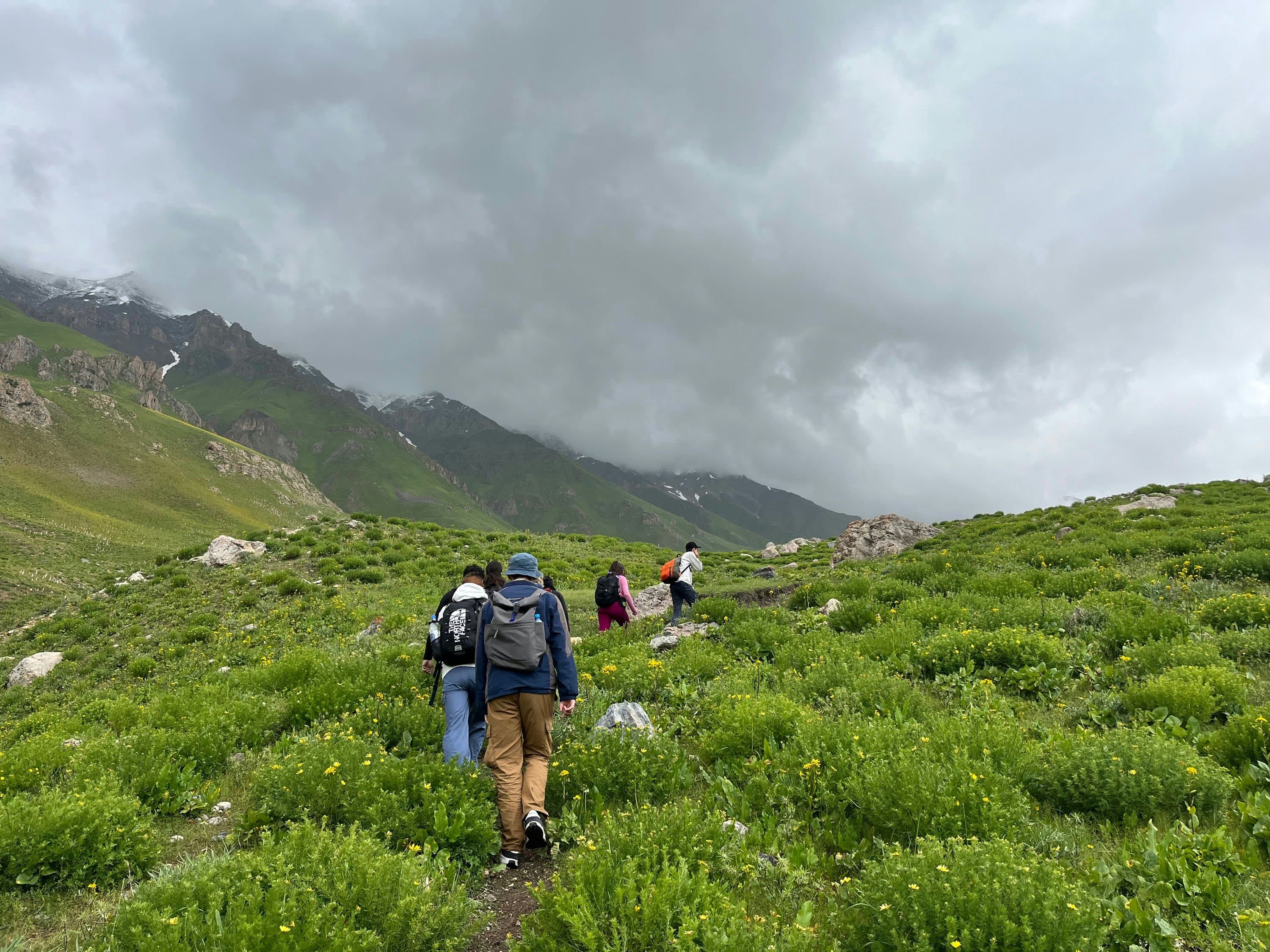 "On weekends, CLS Persian participants often made social plans that involved nature! We found a local tour guide to take us to a mountain about 2 hours north of the capital, Dushanbe. This was one of the most strenuous hikes I’ve ever completed, and at an altitude of 3,000 meters! We shared cookies and chai once we reached a hidden lake near the peak. Along the way, we saw a shepherd and his family guiding hundreds of sheep, groups of donkeys, and wildflowers that added bursts of color to the lush green hills."